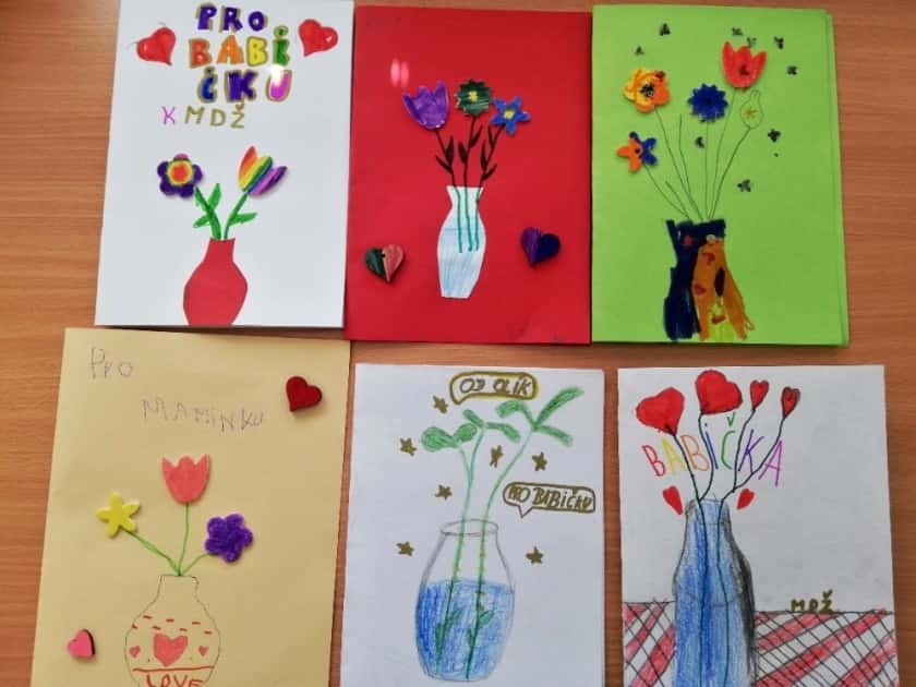 A nyní již přistupujeme k tvořivé činnosti, k výrobě přáníčka. Vyrobili jsme si přáníčko pro maminku, babičku, kde jsme mohli napsat krátký vzkaz. „Děkuji ti za všechno, co pro mě děláš.“ Když máme hotovo, vzájemně si prohlédneme naše výtvory a dáme si ještě jednu „pohybovou hru“. Rozdělili jsme se do skupin po dvou nebo třech. Každý tým stojí v zástupu. Na druhém konci místnosti je tabulka podle předlohy jsme doplňovali symboly. První dojde k tabulce, vyplní jeden údaj dle předlohy a vrací se zpět. Pak pokračuje další člen týmu. Hra probíhá nejen na rychlost, ale i přesnost. Když máme všichni hotovo, zkontrolovali jsme, zda je všechno správně. Podařilo se.