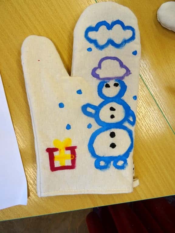 Krátce po poledni přijíždí do družiny paní Eliška Dolejš, aby s námi strávila dnešní odpoledne. Přiváží všechny potřebné věci k výrobě a odchází do naší literární dílny, kde se během odpoledne vystřídají všechna oddělení. Jejich úkolem bude výroba chňapky s vlastním námětem. Ve 13 hodin nastupuje jedna skupina. Postupně se všichni prostřídáme. Paní Eliška nám nejprve vysvětlí, co bude naším úkolem, jak budeme pracovat, ale i jaké barvy a jak budeme používat. Posléze rozdá chňapky a my jdeme na věc. Každá chňapka jiná a jiný motiv. To je paráda. Postupně se všichni vystřídáme, chňapky necháme uschnout a další den si je rozdělíme. Odpoledne uteklo velice rychle a my máme hotovo.