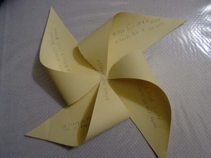 Trochu s předstihem si děti v jednotlivých odděleních vyrobily papírové větrníky, aby je mohly dnes použít. Vyfotili jsme se s nimi a posíláme pozdrav všem postiženým cystickou fibrózou. A na závěr větrníkové verše: